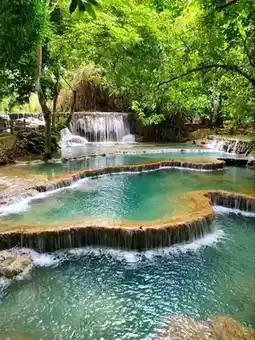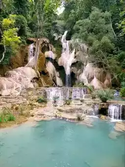 #holidayitinerary Exploring Kuang Si Falls in Luang Prabang Province feels like walking straight into a tropical paradise. The sound of rushing water greets you before you even see it, and then suddenly you are standing before stunning turquoise pools spilling down in gentle cascades. The color of the water is so unreal it looks like it has been painted.