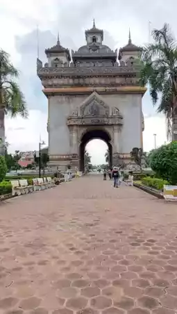 Next, visit the Patuxay Monument in Vientiane, a monument of Lao pride. Built to commemorate those who sacrificed in the war, it resembles France's Arc de Triomphe, but with authentic Lao motifs. The staircase leading to the top offers panoramic views of Vientiane.