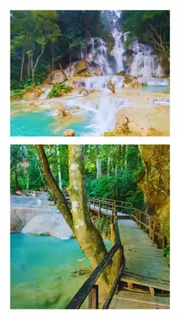 Finally, enjoy the breathtaking natural beauty of Tad Kuang Si Waterfall, a crystal-clear cascade of cascading waterfalls nestled amidst lush forests. Perfect for relaxing, swimming, or exploring the surrounding nature trails.
