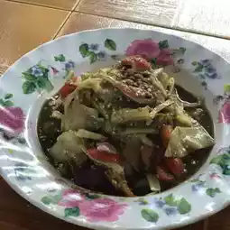 After the cafe, we went to the famous Tam Luang Prabang restaurant, Tam Mak Hung N. Tim (N. Tim's Somtam). We hurried before noon because we were worried about the crowds and the wait. We ended up going around 11:00 AM, and there was no line at all. It was great! It lived up to its reputation, and the price was good. They have a wide variety of dishes on the menu. Go try them!