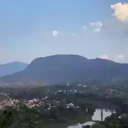 In the evening, we hiked up to That Phu Si to pay respects to the Buddha and enjoy the panoramic view of Luang Prabang from the top. The city was breathtakingly beautiful, with a 360-degree view of the city amidst the valley. We stayed to watch the Mekong River view before descending. There were so many people going up and down, both running and walking. It was so crowded, it was definitely not lonely.