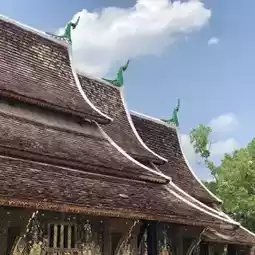 After dessert, we rode to Wat Xieng Thong, a must-see tourist spot in Luang Prabang. It's an ancient temple, a symbol of Luang Prabang. We paid our respects and admired the architecture and paintings of the Lan Xang style.