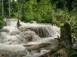 The vibes at Kuang Si Waterfall are usually straight-up chill, with dreamy aquamarine pools that are sooo Insta-worthy. But after the wet season, especially when a typhoon just rolled through, the falls go absolutely wild! The water was raging and flooded the forest. If you roll up during the wet season or right after a big storm, expect a total nature spectacle. It’s epic in its own way! During the dry season, things calm down and serve a more peaceful, zen vibe. Basically, you get to pick the mood of your adventure.