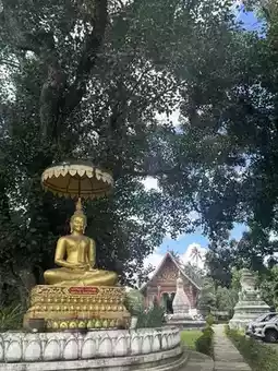 Just outside the town lies the Kuang Si Waterfall. Although the rainy season prevented us from seeing its usual stunning blue-green hues, the powerful waterfall was still awe-inspiring, and you can even take a swim there. 🏊