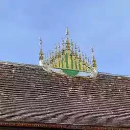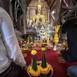 The atmosphere is peaceful and shady. And there is a popular corner for taking pictures. Instagram Hotspot that must be photographed is 🪟 The window of the Ho Phra Man, which is pink and decorated with stained glass. It is a Lao folk tale.