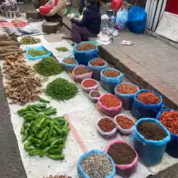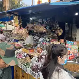 In addition to food, the morning market is lined with shops selling miscellaneous goods, souvenirs, spices, vegetables and various other food.
