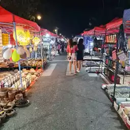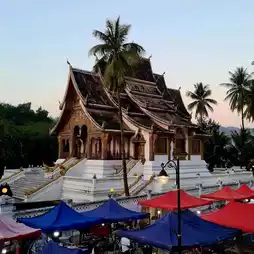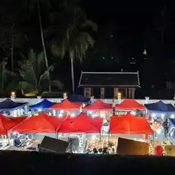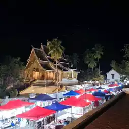#WinterTravel It's called the night market but it's not dark because this place is the Night Bazaar of Luang Prabang. The colors at night during dusk, the vendors of Luang Prabang will start to set up colorful tents, focusing on blue and red, which are the colors of the Lao national flag. They also bring local products, handicrafts, handicrafts, local clothes, Lao coffee, various herbal teas, and decorations, most of which are handicrafts, to sell to tourists at affordable prices and good quality depending on the work in each shop. There are also souvenirs such as various elephant keychains, T-shirts with painted Luang Prabang patterns, and Mekong River seaweed, or what Luang Prabang people call kai paen, which is sold with the famous Luang Prabang fermented fish sauce. This night market or night market is open until 11:00 p.m. every day, starting from the front of the old palace of Luang Prabang, along a distance of about 1 kilometer. #wattosann