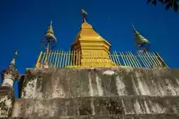 #mountphousi, also written Mount Phu Si, is a 100 m high hill in the centre of the old town of #luangprabang in Laos. It lies in the heart of the old town peninsula and is bordered on one side by the Mekong River and on the other side by the Nam Khan River #laos