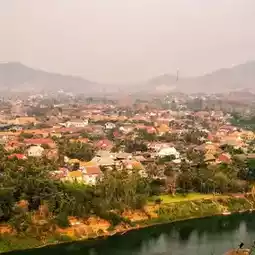 The sun set around 6pm, and from 5pm onwards the hill was packed with tourists. The sky was a bit hazy due to air pollution, but the view was incredibly beautiful. You could see the whole of Luang Prabang city. We climbed the stairs to the top. This is the view after working up a bit of a sweat. The breeze felt great! #Laos #LuangPrabang #MountPhouSi