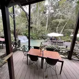 A restaurant in the beautiful waterfall atmosphere, not far from Ta Kwang Si Waterfall, Luang Prabang, Laos.
