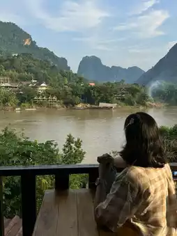 The atmosphere is good, the view is very beautiful. Anyone who comes to visit Luang Prabang