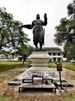 First stop: Royal Palace Museum. You need to make a reservation in advance to visit the palace. At 8 am Laos time (one hour later than Beijing time), you can enter the palace as the first group of visitors of the day. You can learn about the history of Laos. The palace was built in 1909 and was the residence of the first king of Laos, named Sisavang Vong. There is a statue of him on the left side of the courtyard, created by an outstanding Russian sculptor. The Buddhist temple in the palace is golden and dazzling. The main area of the palace is now the National Museum of Laos, which displays a large number of historical relics and national-level cultural relics, which are eye-opening. You are not allowed to wear strange clothes, take off your shoes, bring anything, or take photos when visiting the palace. You can only feast your eyes.