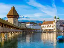 Lucerne is a beautiful city in Switzerland, situated on Lake Lucerne and surrounded by the Alps. Highlights include the iconic Chapel Bridge, an ancient wooden bridge. The old town is well-preserved with medieval buildings and murals, and the captivating Lion of Lucerne, a carved stone sculpture. The city combines natural beauty with historic architecture.