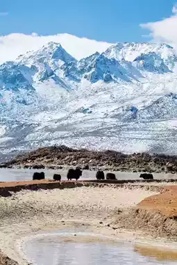 Taking photos📸: You need to drive to the desert, but don’t go in, because you’re afraid the car won’t have enough power. You can take pictures of the lake and the snow-capped mountains at the lakeside. You can take pictures of everything in the desert, including the desert, snow-capped mountains, lakes, and yaks.