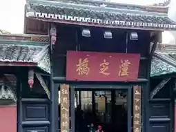 The famous iron chain bridge in the Ganzi Tibetan Autonomous Prefecture of Sichuan, spans the Dadu River in Luding County. It is said that after Emperor Kangxi of the Qing Dynasty unified China, he approved the construction of this bridge and erected a royal plaque at the bridgehead in order to strengthen cultural and economic exchanges in the Sichuan-Tibet region. It is a masterpiece of ancient bridge construction.