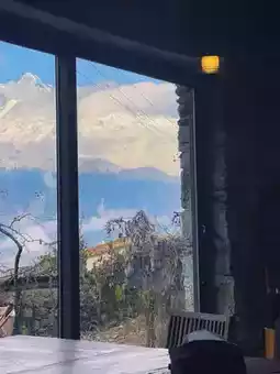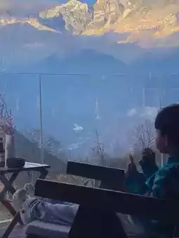 We stayed at Guanshan Yunlan Tingxue, where you can enjoy the sunrise over the mountains right from your room. With underfloor heating and floor-to-ceiling windows, you could happily spend your entire stay indoors. When the weather is nice, you can relax in the courtyard, sip coffee, and gaze at the snow-capped mountains. It's truly hard to leave.