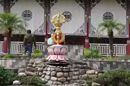 At the center of the sacred garden stands the Bodhi Tree, said to share its origin with the Bodhi Tree in Bodh Gaya, India, under which the Buddha attained enlightenment. Surrounding the garden is the international monastery area, showcasing the diverse styles of Buddhism worldwide: China’s Longfeng Temple shines with golden splendor, Myanmar’s Golden Pagoda Temple is pure and solemn white, and Thailand’s Thai-style temple dazzles with colorful paintings. Most touching is that despite their architectural differences, all monks chant the same sutra together in different languages every morning.