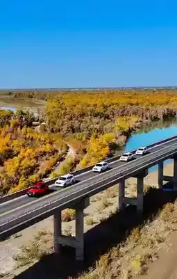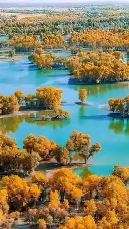 · In the golden autumn of October, the forest sea is dyed golden, combined with desert, lake, and blue sky, every shot looks like a movie scene 🎞️.