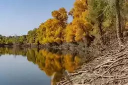 🌟Highlight: Populus euphratica reflected on the water looks like an oil painting, peak golden color in late October