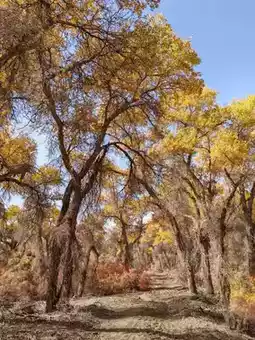**Stunning! The world's largest Populus euphratica forest is right in Luntai!** **The Tarim Populus Euphratica World! Born to live forever, dazzling like gold!**