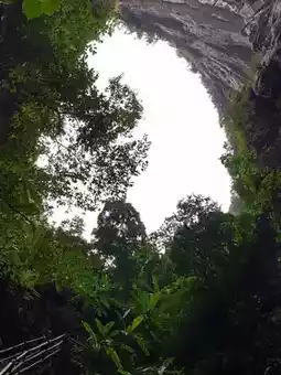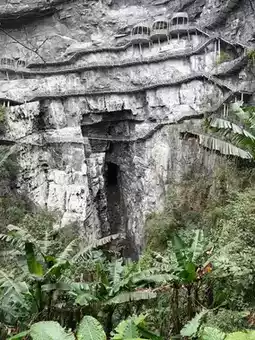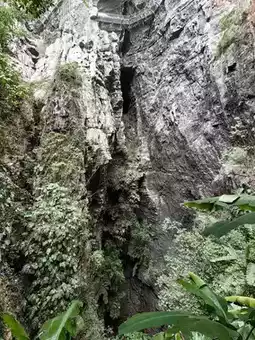 In Luocheng, Hechi, Guangxi, there is a special attraction. In the lofty mountains, there is a huge deep pit, known as the 'Heavenly Pit', so this place is called the Cotton Heavenly Pit Scenic Area. To tour the Heavenly Pit, you have to go down to the bottom of the pit along the walking stairs on the edge of the pit. I came here to play in winter, and I felt moist and warm at the bottom of the pit. On the cliff of the Heavenly Pit, there is a cliff hotel, which is in the scenic area. The roads in the scenic area are being improved now, and it will be more convenient to visit this scenic area in the future.