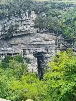 Lighting hours: 19:30-21:30 (arrive early for the magical lighting moment!). The warm yellow lights against the cliff and tiankeng backdrop perfectly recreate the martial arts novel atmosphere!