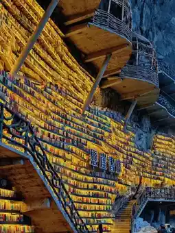 This breathtaking cliffside bookstore becomes absolutely magical when lit up at night—it's like the legendary library has come to life!!