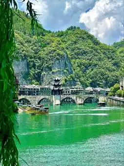The Wuyang River is a scenic river in Guizhou Province, China, best known for flowing through the ancient town of Zhenyuan Old City. Its most iconic feature is its emerald-green water winding between steep karst mountains, creating picture-perfect reflections of cliffs, caves, forests, and ancient bridges.
