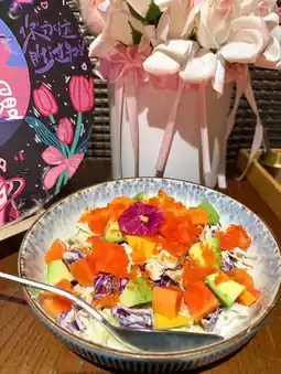 Papaya is so sweet! Crab seeds are crispy with avocado creamy texture, salad dressing with slight wasabi spicy strong, fresh and appetizing first hit ~