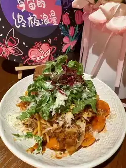 Laced mozzarella cheese spreads all over the plate! The meat sauce is sweet and sour, the pasta is cooked to just the right bite, the grilled bun dipping sauce is so delicious that I can't stop eating it ~