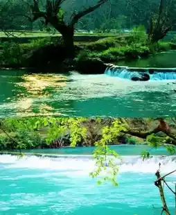 The Duoyi River runs from Duoyi Village to Sanjiangkou, the "Three Provinces of Jiming", with a total length of about 12 km. There are nearly 40 waterfalls on the riverbed. There are ancient trees and bamboos on both sides of the river, and Buyi villages are lined up. The river is rich in colors and has clear layers. On the "Ten Beaches at One Glance", countless travertine beaches are stacked one after another, staggered and orderly, and are naturally formed. The stilt houses on both sides of the river are hidden among the trees and bamboo forests, creating a truly tropical landscape.