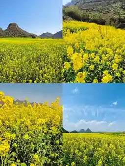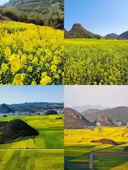 ✨Jinji Peak Cluster is an excellent viewing spot. At sunrise and sunset, the sea of flowers intertwines with the peaks, forests, and sea of clouds, creating a fairyland-like scenery. The karst terraces of Niujie Snail Field feature rapeseed flowers arranged in a spiral pattern, which is unique and spectacular. The Jiulong Waterfall Group is surrounded by rapeseed flowers. Take a cable car to overlook the waterfall and the sea of flowers, a breathtakingly beautiful sight. The terraced flower sea of Majie Cloud Flower Terrace spreads out like golden waves, making you feel intoxicated.