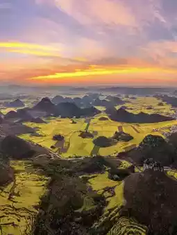 God's Palette is the core scenic spot for viewing the sea of rapeseed flowers. This is a great place to view rapeseed flowers and photograph the sunrise and sunset. In the early morning at sunrise, the morning mist fills the rapeseed fields, as if you have stepped into a dream.