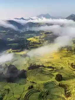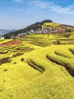 ❸ Majie Terraces·Golden Sea Waves The rapeseed fields in Majie Village are distributed along the mountain like Hani terraces. You can overlook the spectacular sea of rapeseed flowers all over the mountain.