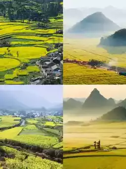 • Rapeseed Flowers: The sea of rapeseed flowers in Luoping is one of the most iconic local landscapes. The best viewing spots include Jinji Peak Cluster and the spiral fields. Jinji Peak Cluster is the core scenic area of the Luoping rapeseed flower sea. Climb to the top of Jinji Peak for a panoramic view of the magnificent rapeseed fields. The rapeseed fields in the spiral fields present a unique circular terraced landscape, resembling whirlpools in the ocean, creating a strong visual impact.