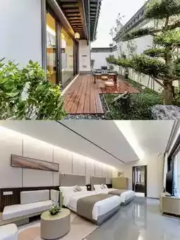 The Flower Mansion Luxury·Blue City Peach Blossom Source Hot Spring Courtyard Homestay brings you a different stay experience with its unique Chinese courtyard style. Each household has an independent entrance and enjoys a pool of hot springs, making you feel as if you are in the Peach Blossom Source, enjoying the peaceful and peaceful life of Peach Blossom Source. The central garden of the homestay is carefully built by the Suzhou non-genetic inheritor "Xiangshan Gang", like a miniature version of the Humble Administrator's Garden, allowing you to appreciate the real garden art here.