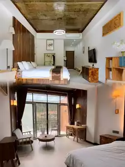 There are super rich entertainment projects here, you will never be bored🥳. There is a canopy outdoors, you can chat with friends under it; the self-service barbecue stove is free to use, come for an outdoor bbq🍖, the aroma is overflowing; if you like singing, you can sing in KTV🎙, or watch a blockbuster in the open-air movie🎬; The B&B also has a special tea room and bar, a cup of tea🍵 a bottle of wine🍷, happy and forgetful. By the way, there is also an infinity pool🏊♀️. It's so cozy to swim in it in summer~