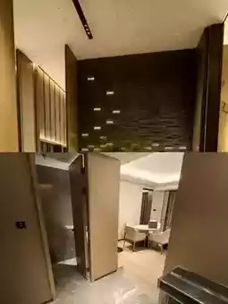The lobby is tall and open, beautifully decorated, and full of artistic atmosphere. The crystal chandeliers are dazzling, and the floor is so shiny that it makes you feel like you are in a palace.
