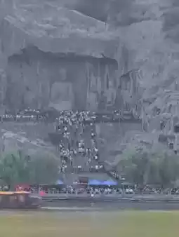 You can take a bus from the city center (¥1.5, about 1 hour) to the Longmen Grottoes (entrance fee ¥90, tickets can only be purchased on-site without an ID). I thought I could avoid the crowds of tour groups by going around noon, but I was too naive. The Longmen Grottoes, much like the Terracotta Warriors in Xi'an, are always bustling with visitors.