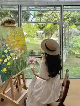 Sitting by the window next to an easel, sipping tea while admiring the beautiful view outside is utterly healing 💖! Pro tip for the ladies: wear light-colored dresses that perfectly complement the garden and afternoon tea setting. Whether you're going for vintage, countryside, or atmospheric photo styles, this place has got you covered!