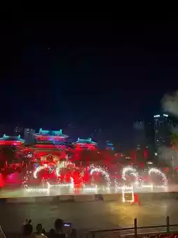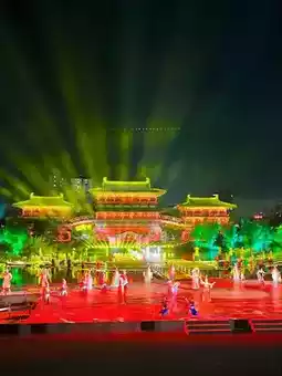 The newly launched "Phoenix Dance in Divine Capital" at Jiuzhou Pool left me utterly stunned 🤯. Over 200 performers in glowing Tang Dynasty costumes rushed onto the stage