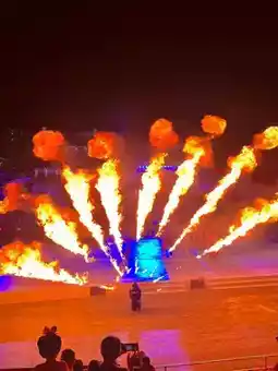 The fire-spitting performance literally set the stage on fire