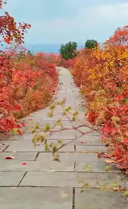 For a close-up leaf viewing, head to the Red Leaf Ridge on the back mountain. The trail is hidden among the red leaf forest, and the rustling sound of fallen leaves underfoot is super soothing. This trail is difficulty level 0, so elderly and children can easily walk it, fully wrapped in the autumn atmosphere.