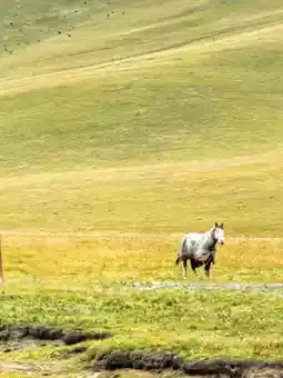 The car wheels roll over the bumpy surface of Provincial Road 312, and outside the window, the flowing landscape resembles ribbons of green and yellow silk. Grasslands and wetlands stretch out in a patchwork, with herds of yaks scattered like black pearls across the alpine meadows. In the distance, thin smoke rises from herders' tents, leaving only the sound of the wind and the rhythmic breathing of the car wheels in this vast expanse.