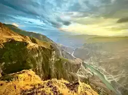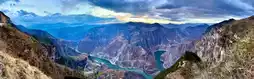 Around Kunming: Colorado Grand Canyon·Breathtaking Sunset After the Rain|||The Pudu River Grand Canyon after rain is absolutely stunning!! The 1,600-meter vertical drop chasm is shrouded in mist, like a scene from an epic fantasy drama🌫️! The river, carrying silt, flows quietly through the canyon. Wild azaleas sway in the breeze, moss glows emerald green after soaking up the rain, and no phone camera can capture its awe-inspiring beauty😭!