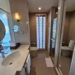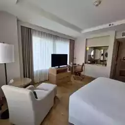 On the day of the stay, there were about 40 elite rooms. Booked the cheapest room and got upgraded to 1 king larger corner room 35 sqm. The room was spacious and not cramped. The bed was good, strong water, the air conditioner was cool. There was no coffee maker. There were amenities such as Chang beer and soda, 1 bottle each.