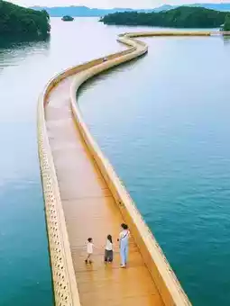 The winding Jinlong Bridge and the azure waters of the West Sea