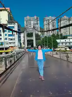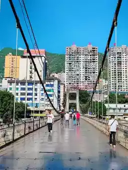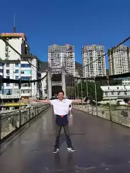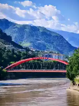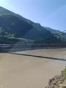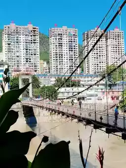 At 15:20 on the afternoon of September 14, 2023, after nearly eight hours of driving, the Yunnan-Tibet Tour arrived at the Lancang River Border Checkpoint entering Liuku, Lisu and Nu Autonomous Prefecture. After entering Liuku, we drove along the Nujiang River and arrived at the second attraction of the day: Nujiang Xiangyang Bridge at 16:40. This is my second visit to this bridge after 25 years. Liuku Xiangyang Bridge was built in 1966 and officially opened to traffic on New Year's Day 1970. It is a steel cable flexible automobile suspension bridge with a clear span of 131 meters, a total length of 136 meters and a carriageway width of 4 meters. At that time, it was a flexible automobile suspension bridge with a wooden structure deck and a designed load capacity of one Class 13 heavy-duty vehicle. After the completion of the Nujiang Bridge in 1991, Xiangyang Bridge was only for people and horses to pass. After 1993, motor vehicles were prohibited from passing through. Now, only pedestrians are allowed to pass through. In 1999, Xiangyang Bridge underwent its first large-scale renovation. The bridge deck was converted from a wooden structure to a steel structure, and the width of the bridge deck was increased to 5.5 meters, making it a horse-and-man suspension bridge. The towers at both ends of Xiangyang Bridge still have Chairman Mao's poems painted in red paint: "A bridge spans the north and the south, the sky becomes a thoroughfare", "Red rain turns into waves at will, green mountains turn into bridges intentionally", and the horizontal banner reads "Long live Chairman Mao", and below it is the name "Xiangyang Bridge". We stayed at Fukang Hotel on the bank of Nujiang River that night.