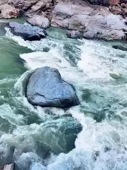 Continue along the 219 Most Beautiful Highway, passing the First Roar of the Nujiang River. Standing by the fence, watching the waves splashing and the rushing river, listening to the roaring sound of the river, it is so shocking. On the way, I saw a huge rock lying in the middle of the river. When the rushing river rushed to the huge rock, the waves hit the shore, so it is called "Tiger Jump". Continuing on, I saw an uninvited guest in the small courtyard of the teacher's dormitory of Fugong County Middle School. This mysterious unidentified flying boulder from the Biluo Snow Mountain has become a wonder of the Nujiang River! There are also the Great Man Peak, the heavenly homes along the way, and I even took a ride on the Nujiang "airplane" for a while, which was quite enjoyable!