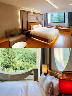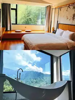 🗻Sleeping with mountains and rivers, in the embrace of the mountains, sleeping with the mountains and rivers~Entering the bedroom, the spacious and bright floor-to-ceiling windows, the mountain group and the cloud scenery are all in sight, and you can also chat and talk before the sun sets, play and play, and feel comfortable. Even if you don't go out, you can stay here all day, take pictures and pass the time, and enjoy the romance of wild life~